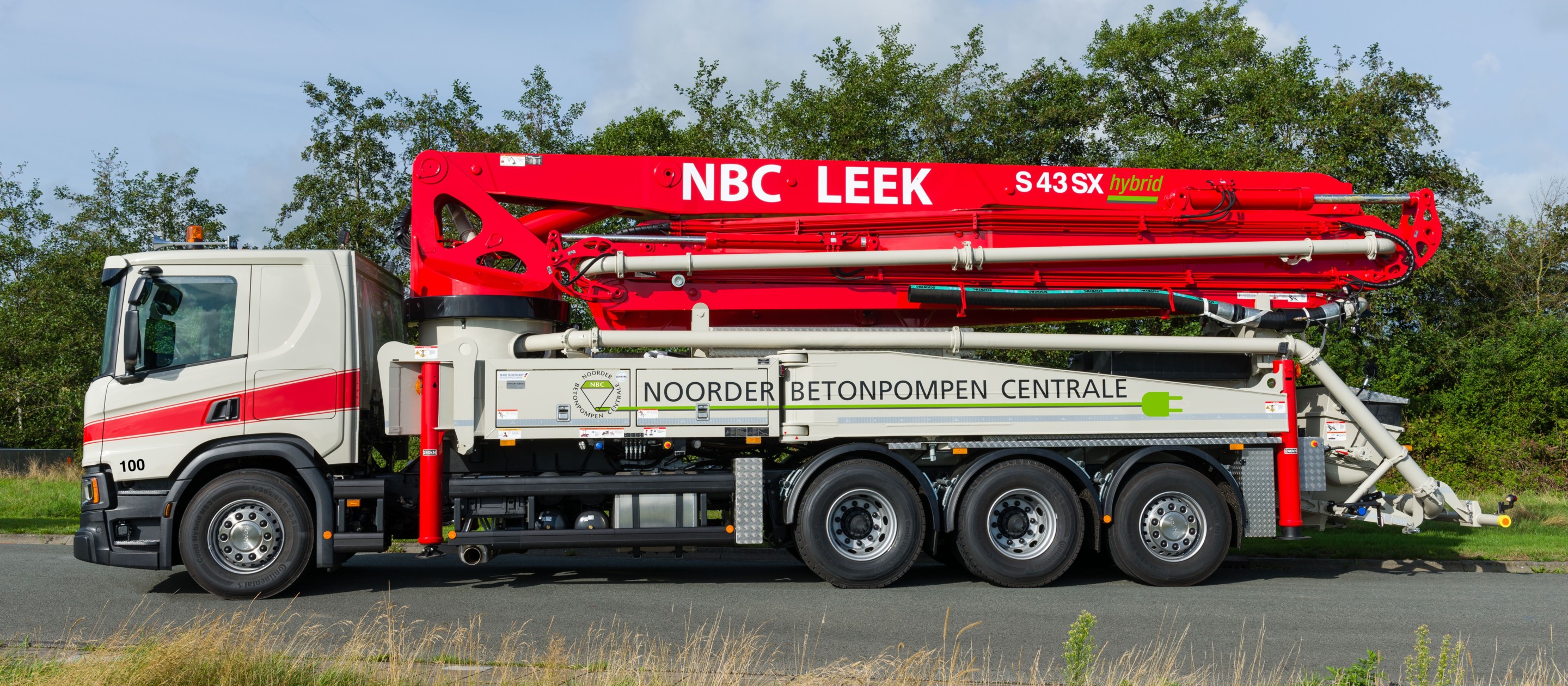 Hybride pomp met de mogelijkheid om op de bouw volledig elektrisch te pompen op 64A en 125A.